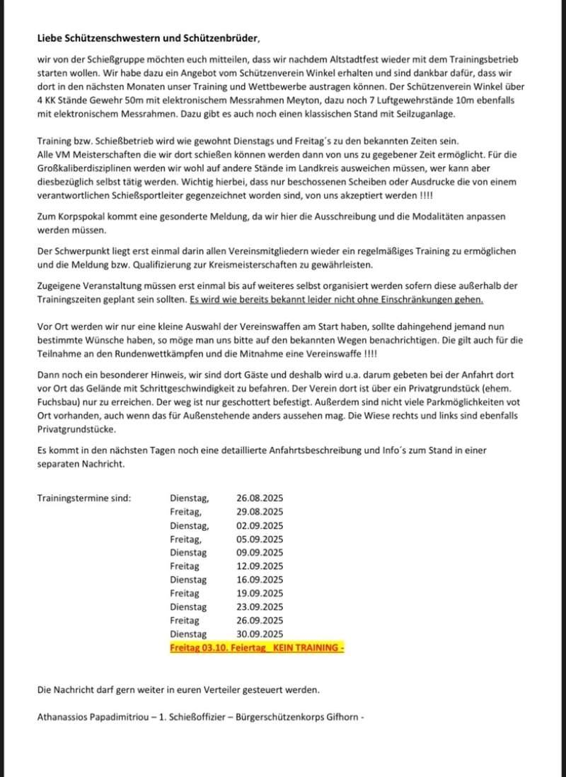 In der Zeit vom 10. Februar 2025 bis zum 23. Februar 2025 findet das öffentliche Preisschießen des Bürgerschützenkorps Gifhorn statt.