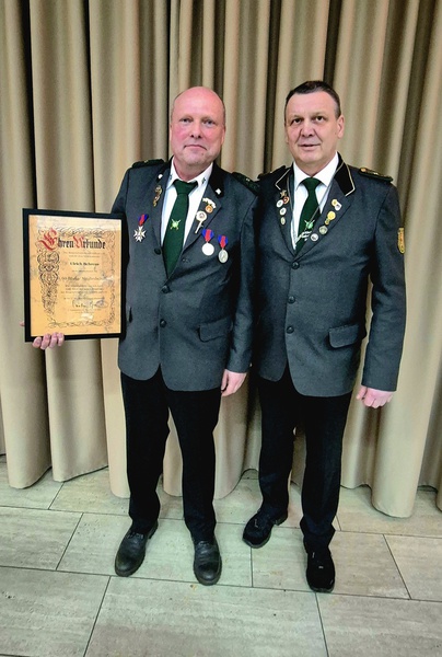 Für ihre 40-jährige Mitgliedschaft im Deutschen Schützenbund erhielten die Ehrennadel in Gold: Matthias Busch und Hubert Schwanke